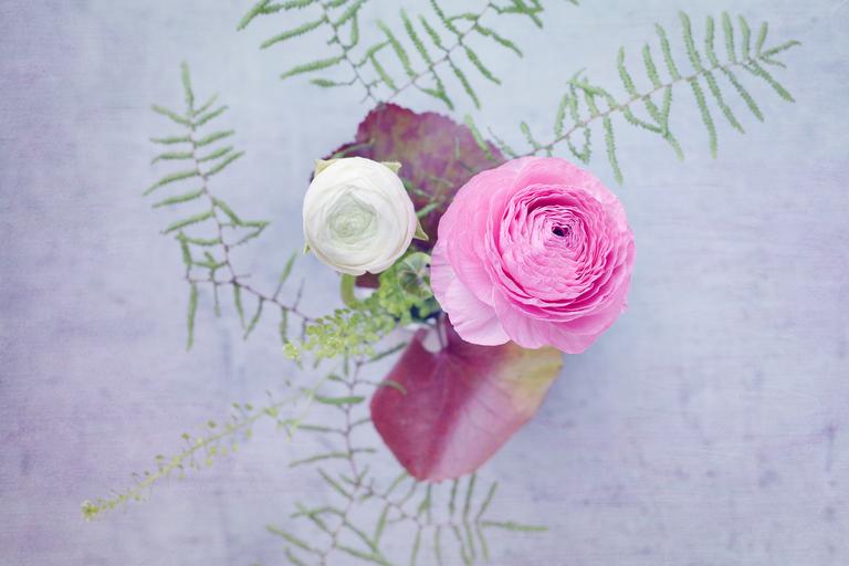 Keywords: ranunculus pink white flowers bouquet from above close decoration still life spring flower schnittblume spring