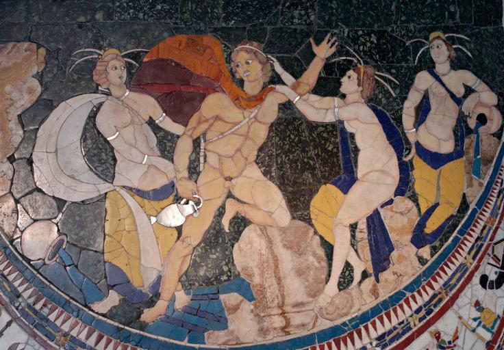 Keywords: Rape Hylas Massimo.jpg Opus sectile panel with the rape of Hylas by the Nymphs Roman artwork first half of the 4th century From the basilica of Junius Bassus on the Esquiline Hill Panneau en opus sectile représentant le rapt d'Hylas par les nymphes Œuvre romaine première moitié du IVe siècle ap J -C Provenance basilique de Junius Bassus sur l'Esquilin Pannello parietale in opus sectile in marmi colorati e madreperla con scena del ratto di Ila da parte delle Ninfe Opera romana prima metà del IV sec d C Dalla Basilica di Giunio Basso sull'Esquilino Museum Palazzo Massimo Second floor object history credit line From the collection of the Palazzo del Drago accession number Jastrow 2006 other versions <gallery> Image Pannello in opus sectile dalla basilica di giunio basso jpg </gallery> Rape of Hylas mosaic from the Basilica of Junius Bassus Rome |