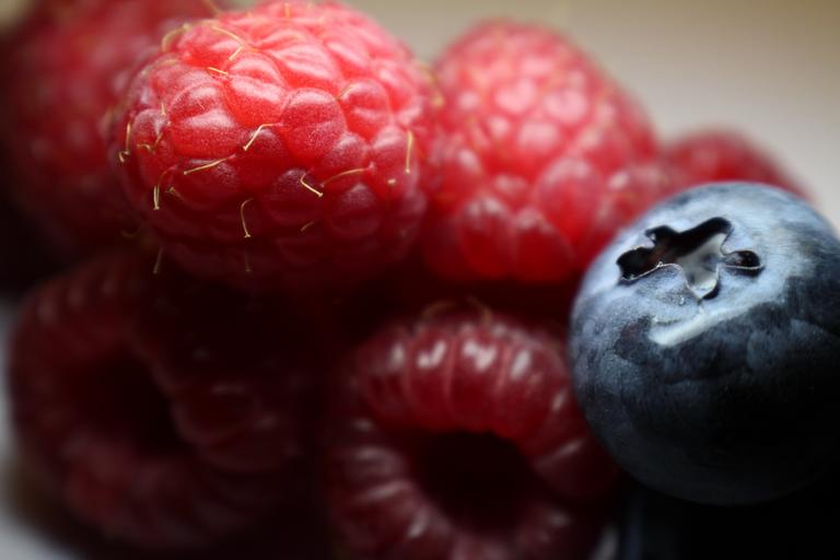 Keywords: raspberries blueberries fruit berries fruits healthy vitamins red blue sweet