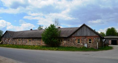 Keywords: Raudondvario dvaro arklidės.JPG Dvaro arklidės Raudondvaris Riešės sen Vilniaus raj own 2016-05-10 Šarūnas Šimkus Villages in Vilnius District Municipality