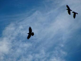 Keywords: raven bird birds flight sky clouds cirrus colors