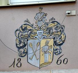 | Keywords: Ravensburg Marienplatz15 Waldhorn Wappen.jpg  Ravensburg Marienplatz 15 Hotel Waldhorn Wappen mit Jahreszahl 1860 Familienwappen Koch own own photograph 2011-07-31 Photo Andreas Praefcke Photos by User AndreasPraefcke Coats of arms from Ravensburg Coats of arms of families of Germany - D Dressel Wooden spoons Spoons in heraldry Hotel Waldhorn Ravensburg |