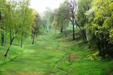 Keywords: ravine green spring grass trees peaceful tranquil estate grounds
