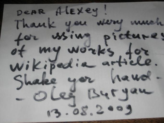 Keywords: Razreshenie ot Olega.jpg en Agreement of the author's Oleg Buryan to the placement of these files images under this license http //en wikipedia org/wiki/Buryan_Oleg ru Раз ешение авто а Олега Бу ьяна на азмещение этих фотог афий под данной лицензией http //en wikipedia org/wiki/Buryan_Oleg uk Дозвіл авто а Олега Бу 'ян на озміщення цих фотог афій під даною ліцензією http //en wikipedia org/wiki/Buryan_Oleg own Chelovechek 2009-08-13 Buryan's art work Comparative Buryanology |
