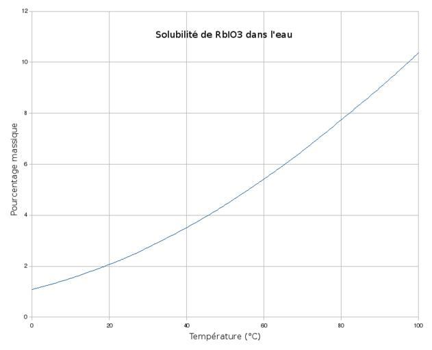 Keywords: RbIO3 Solubilite dans eau.png fr Solubilité de RbIO3 dans l'eau en fonction de la température Créée par mes soins avec OpenOffice org Calc et The Gimp d'après http //www hbcpnetbase com/ Handbook of Chemistry Physics Epop Check categories 2009 May 2 fr wikipedia Iodate_de_rubidium Chemistry 2 Rubidium compounds Iodates |
