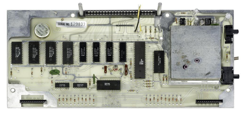| Keywords: RCA-Studio-II-Motherboard-Top.jpg The top of a motherboard for an RCA Studio II video game console The following list are the names and numbers of chips that appear on the motherboard <br>RCA CDP1831CE x4 <br>CDP1822NCE P2101A-4 x3 <br>CDP1822NCE 77320 <br>RCA CDP1802CE 723 v2 <br>PCA TA10171V1 84926 727 <br>CD4042BE RCA 727 <br>CD4001UBE RCA 711 <br>CD4515BE RCA 727 own 2015-03-09 Evan-Amos other versions User Evan-Amos/EABanner Evan-Amos Electronic devices on white background Taken with Nikon D7000 RCA Studio II Computer motherboards |
