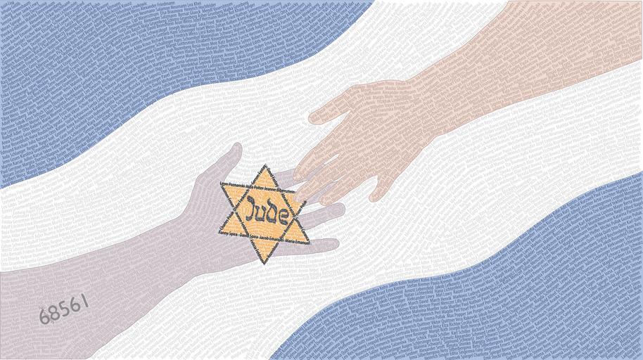 | Keywords: Reaching Out.jpg en This one contains over 2000 names of those who perished in the Holocaust The names are from the <a href http //www yadvashem org/wps/portal/IY_HON_Welcome rel nofollow >Central Database of Shoah Victims' Names</a> The number on the left arm belonged to well known song writer <a href rel nofollow >Fritz Löhner-Beda </a> More information is available at the preceding link 2012-12-26 own Dzeni cc-zero Commemoration of the Holocaust The Holocaust in art Micrography Yellow badge Uploaded with UploadWizard |