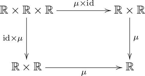 | Keywords: Real numbers-Associativity.svg  Dieses kommutative Diagramm drückt das Assoziativgesetz der reelen Zahlen aus own 2006-08-13 Markus Schmaus Public Domain Quelltext Siehe wikipedia de Benutzer Markus Schmaus/Kommutatives Diagramm <pre> latex \documentclassa4paper article \usepackage amssymb \usepackagedvips matrix arrow ps color line curve frame xy \usepackage diagxye \thispagestyle empty \begin document \def\R \mathbb R \bfig \Square \R \times \R \times \R` \R \times \R` \R \times \R` \R ; \mu \times \mathrm id ` \mathrm id \times \mu` \mu` \mu \efig \end document </pre> Commutative diagrams of binary operations Commutative squares Multiplication Images with LaTeX source code Real numbers |
