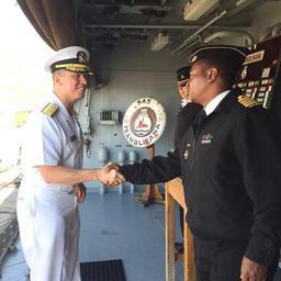 Keywords: Rear Adm. Tom Reck, left, is greeted by Capt. Jabu Mbotho.jpg en 150508-N-ZZ999-002 SIMONS TOWN South Africa May 8 2015 U S 6th Fleet Vice Commander Rear Adm Tom Reck left is greeted by Capt Jabu Mbotho aboard the South African navy frigate SAS Isandlwana F146 during a key leader engagement visit May 8 2015 U S Navy photo/Released 2015-05-08 10 04 09 author 150508-N-ZZ999-002 -34 188933333333 18 437680555556 heading 80 2356495468278 PD-USGov-Military-Navy F146 Isandlwana ship 2006 Uploaded with UploadWizard Images from US Navy location SIMON'S TOWN South Africa People of the South African Navy |