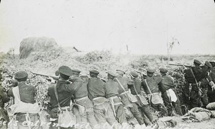 Keywords: Rebels Entrenched at Kilometre Ten, China, 1911 (IMP-CSWC47-LS1-46).jpg en <br> Rebels Entrenched at Kilometre Ten China 1911 Black and white lantern slide picturing entrenched rebel forces firing at Imperial troops from behind their lines at kilometre ten during the 1911 rebellion against the Qing dynasty from October to December 1911 Kilometre ten perhaps refers to the distance from the centre of the city of Hankou and was a rebel battle station attacked and taken by Qing troops in late October 1911 This slide comes from a collection held by the Church of Scotland and generated by the medical missionary Charles Somerville who worked for the London Missionary Society in Hankou from 1904 to 1914 Photographer Unknown Filename IMP-CSWC47-LS1-46 tif Coverage date 1911 Subject unesco Revolutions; Political movements Part of collection International Mission Photography Archive ca 1860-ca 1960 Part of subcollection Photographs from the Centre for the Study of World Christianity University of Edinburgh U K ca 1900-ca 1940s Repository name Centre for the Study of World Christianity Archival file Volume4/IMP-CSWC47-LS1-46 tif Geographic subject city or populated place Wuhan Repository address The University of Edinburgh School of Divinity New College Mound Place Edinburgh EH1 2LX United Kingdom Geographic subject country China Format aacr2 lantern slides 8 2 x 8 2cm Geographic subject continent Asia Rights Contact the repository for details Part of series Church of Scotland Slide and Visual Collection; Charles Somerville CSWC47-LS1 Repository email divinity-CSWC ed ac uk Date created 1911 Publisher of the digital version University of Southern California Libraries Subject aat genre exterior views Format aat lantern slides; photographs Geographic subject state Hubei Access conditions http //www ed ac uk/schools-departments/divinity/research/centres/world-christianity/collections-resources Geographic subject military sites File CSWC47/LS1/46 Contributor Photo Department Tientsin Hui Wen Academy Tientsin China Subject lcsh Rebellions; New Army China ; soldiers 1911 date created author http //digitallibrary usc edu/cdm/ref/collection/p15799coll123/id/78425 PD-old-70-1923 Magic lantern images Images from USC Digital Library uploaded by Fæ International Mission Photography Archive ca 1860-ca 1960 Wuhan Battle of Yangxia |