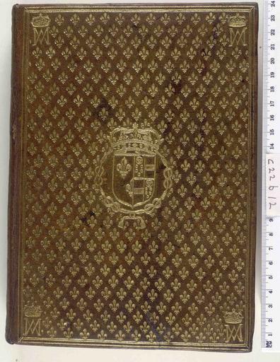 Keywords: Recueil des oeuvres spirituelles du P. Estienne Binet - Upper cover (c22b12).jpg Style Armorial Semis background of small tools; Caption Upper cover; Colour Brown; Edge Unspecified exhibition history Decorative Technique Tooled in gold; Cover Material Calf 1600-1650 Paris with widow Marie de Medici's coat-of-arms and cypher after her husband Henri IV of France's death in 1610 F Macchi- L Macchi Dizionario illustrato della legatura p 95 A couple of very similar bindings are attributed to the Ève atelier Bibliothèque Raphaël Esmerian p 77 79 n 49 on text Fr Hilarion de Coste Les éloges et vies des Reyns Princesses Dames et Demoiselles illustres Avec l'explication de leurs devises emblèmes hyeroglyphes et symboles Paris chez Sebastien Cramoisy 1630; p 80-81 n 50 on text Antoine de Pluvinel Maneige royal Paris G Le Noir 1623 A similar example kept in the Paris National Library on André Schott Adagia sive proverbia graecorum Antverpiae 1612 shelfmark Rés Z 928 is reproduced by A Labarre Les reliures des anciens livres de prix p 479 fig 1 Volume recorded by E Quentin Bauchart Les Femmes Bibliophiles I p 186 reproduced by A R A Hobson French and Italian Collectors n 33 and in J R Abbey Catalogue of valuable printed books and fine bindings 21-23 June 1965 p 59 lot 162 pl 19 See M Breslauer Inc Catalogue 110 p 130; Burlington Fine Arts Club Exhibition of bookbindings p 51 pl LXIII on De Castre Le vie du bien-heureux Jehan de Dieu Paris 1609 owned by J Toovey; Y Devaux Dix siècles p 101; Librairie Sourget Chartres Manuscrits enluminés et livres précieux 1280-1930 Catalogue XXI p 236-237 n 90 on Honoré Urfé La vraye astree de Messire Honoré d'Vrfé Paris Veuve Olivier 1627 For an example of the same period with her arms and those of Henri IV see Librairie Sourget Chartres Manuscrits enluminés et livres précieux 1476-1922 Catalogue XX p 51-53 n 25 on Missale romanum Venice 1552; Librairie Sourget Chartres Manuscrits enluminés et livres précieux Catalogue XXII p 82-83 n 35 on Coeffetaeu L'histoire des souverains pontifes des empereurs et des roys chrestiens depuis S Pierre jusqu'à notre siècle Paris Sébastien Cramoisy 1614 object history Text 1620; Rouen; Marie de Medicis Queen Consort of Henri IV King of France 1573-1642 object type Cc-zero place of creation Binding France place of discovery Unspecified British Library image http //www bl uk/catalogues/bookbindings/LargeImage aspx RecordId 020-000006842 ImageId ImageId 43026 Copyright BL Recueil des oeuvres spirituelles du P Estienne Binet Uploaded with GWToolset Recueil des oeuvres spirituelles du P Estienne Binet - Upper cover c22b12 http //www webarchive org uk/bldatasets/bindings/7571_4 jpg Bookbinding 17th-century bookbinding British Library Bookbindings |