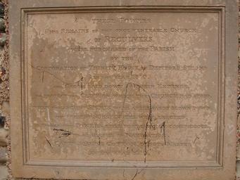 | Keywords: Reculver towers plaque DSCN3803.TIF en Plaque on the ruined towers at Reculver Reads these Towers The remains of the once venerable church of Reculvers were purchased of the parish by the Corporation of Trinity House of Deptford Strond in the year 1810 and groins laid down at their expence to protect the cliff on which the church stood When the ancient spires were afterwards blown down the present substitutes were erected to render the towers still sufficiently conspicuous to be useful to navigation Captn Joseph Cotton Deputy Master in the year 1819 own Jamesjhawkins 2011-09-03 Cc-zero Reculver Church Ruins in Kent Plaques in Kent |