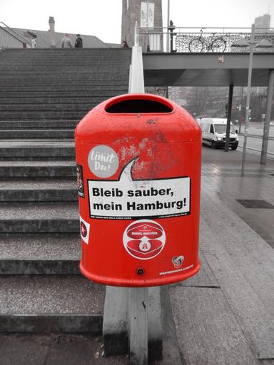 Keywords: recycle bin garbage can hamburg environment environmental protection garbage pollution regulation disposal waste bins litter bin cleanliness throw away society throw away fun humor saying