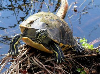 Keywords: red bellied turtle reptile wildlife pond water shell nature aquatic wild tortoise swamp portrait