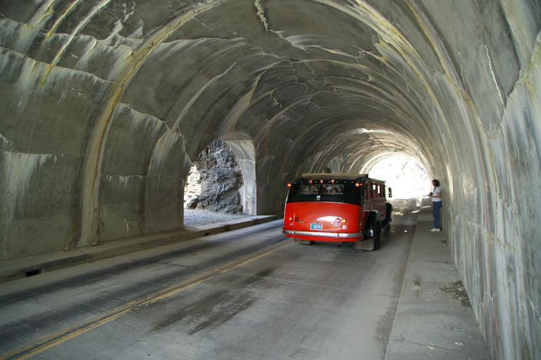 | Keywords: glacier national park glaciernationalpark going-to-the-sun road goingtothesunroad red bus redbus jammer interpretation tour interpretive tour interpretivetour bus bus tour bustour visitors tunnel vault The Going-to-the-Sun Road passes through two major tunnels in its journey across the Continental Divide. Here, a historic Red Bus (sometimes called a "jammer") takes a group of visitors through the west side tunnel. Photo: David Restivo, NPS. The Going-to-the-Sun Road passes through two major tunnels in its journey across the Continental Divide. Here, a historic Red Bus (sometimes called a "jammer") takes a group of visitors through the west side tunnel. Photo: David Restivo, NPS. |