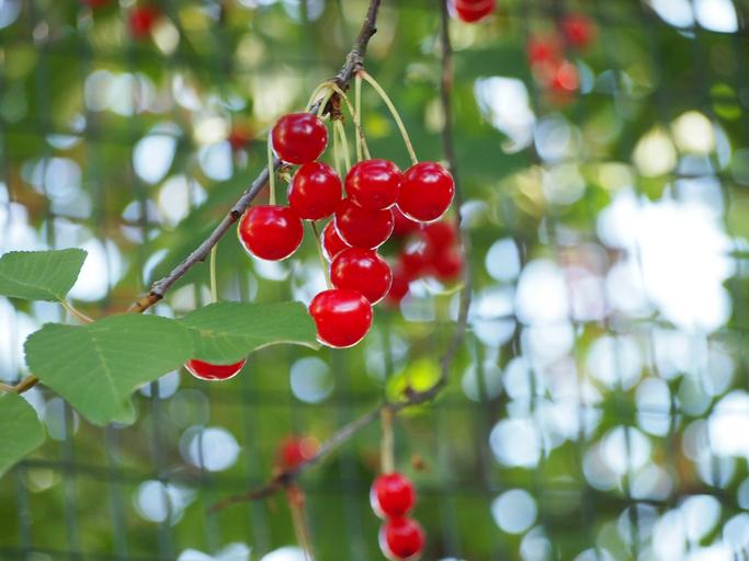 Keywords: red cherries fruit cherry food nature tree red fruits pollination flower spring spring flowers plant green color bright red green foods italy