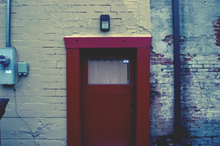 Keywords: red door bricks wall building