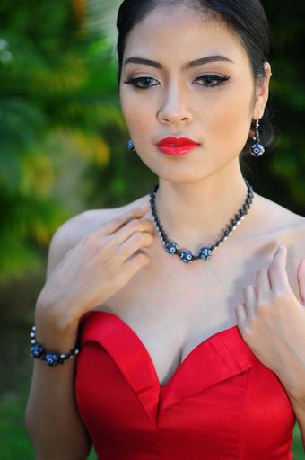 Keywords: red dress necklace lady