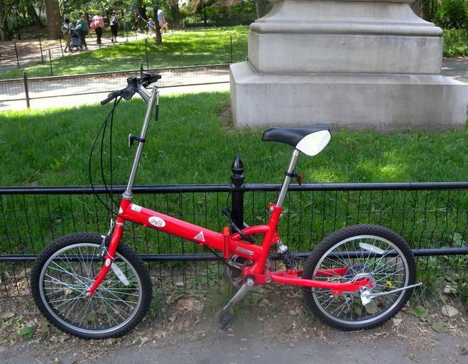 Keywords: Red iPed folder jeh.jpg en Red folding bike in Manhattan Upper West Side 2011-05-29 own Jim henderson cc-zero Uploaded with UploadWizard Folding bicycles
