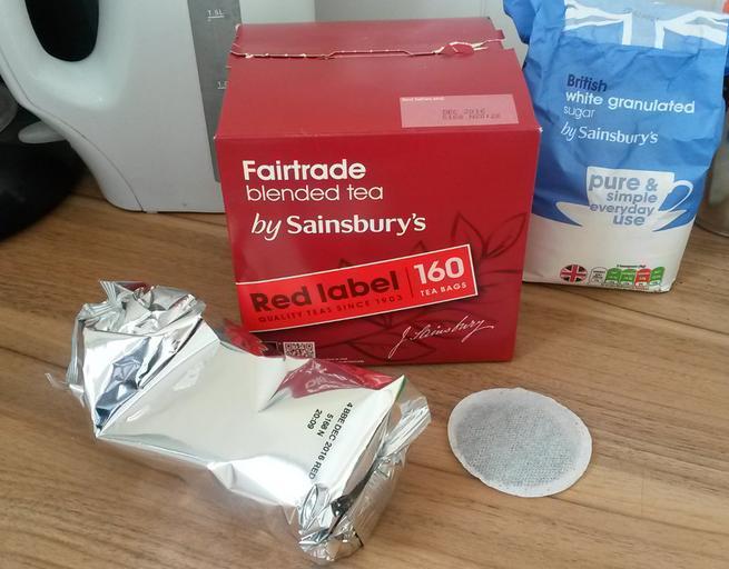 | Keywords: Red-label-tea.jpg en Box of Sainsbury's Red Label tea with foil pack and single tea bag in the foreground Kettle and bag of sugar in the background 2015-09-04 11 32 00 own Andrew Oakley other versions Photo taken in England cc-zero Uploaded with UploadWizard Tea |