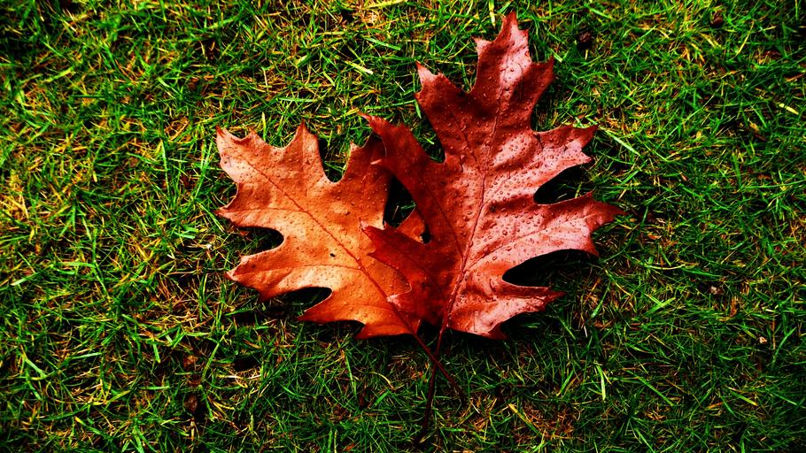 Keywords: red leaves drops water grass seasons autumn
