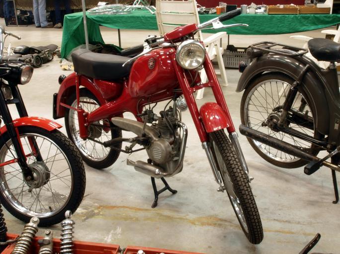 Keywords: Red Motom moped.JPG Photographed at the Bromfietsshow Bollenstreek 2010 The Netherlands own 2010-11-14 11 45 53 Alf van Beem CC-Zero Bromfietsshow Bollenstreek 2010 Classic vehicle photographs by Alf van Beem Motom motorcycles