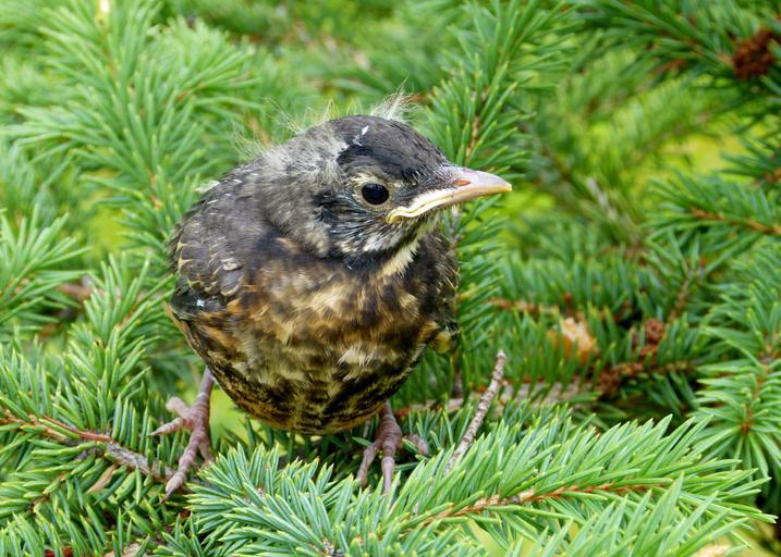 Keywords: red robin bird feathered nature wildlife animal fledgling poult biddy