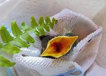 Keywords: red robin chick young bird feathered nature hungry animal close-up