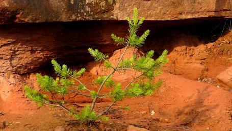 Keywords: red sandstone erosion nature rock sand stone fir tree young tree live grow scion sprout go up young growth green needles