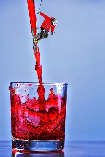 Keywords: red wine glass skier alcohol beverage red celebrate downhill drink pour photo montage mixup remix mashup portrait vertical free image royalty free