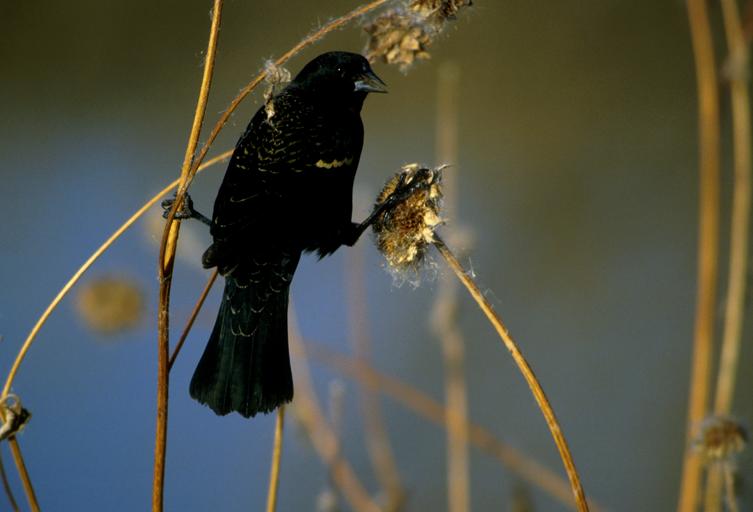 Keywords: red winged blackbird bird wildlife perched feathers songbird blackbird