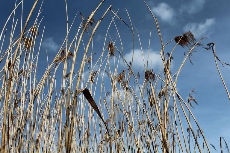 Keywords: reed sky teichplanze nature lake bank clouds waters
