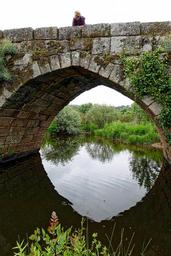 Keywords: reflection arch bridge water person stone old river architecture