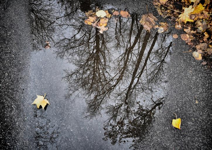 Keywords: reflection puddle asphalt autumn nature trees leaves rain weather