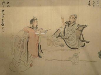 | Keywords: Refusing a Meal from 'Scenes from the Life of Tao Yuanming' by Chen Hongshou.JPG en Refusing a Meal from the hand scroll Scenes from the Life of Tao Yuanming by Chen Hongshou Qing dynasty dated 1650 ink and color on silk Honolulu Museum of Art accession 1912 1 own Creator Chen Hongshou dated 1650 Refusing a meal The man was not ashamed to beg food from friends but refused a gift of meat I after all do not love my stomach Scenes from the Life of Tao Yuanming by Chen Hongshou 1650 PD-old-100 |
