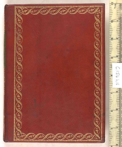 | Keywords: Reglas y constituciones que han de observar y cumplir las Hermanas de la Caridad del Santo Hospital Real y General de Nuestra Senora de Gracia de la Ciudad de Zaragoza - Upper cover (c154h16).jpg Style Frame; Caption Upper cover; Colour Red; Edge Unspecified exhibition history Decorative Technique Tooled in gold; Cover Material Goatskin includes morocco turkey etc 1800-1850 Part of the Charles Ramsden Collection of Signed Bindings Works on Spanish bookbindings include Hispanic Society of America An Album of Selected Bookbindings New York 1967 by C L Penney; M Lopez Serrano Biblioteca de Palacio Encuadernaciones Madrid 1950; H Thomas Early Spanish Bookbindings London 1939 object history Text 1824; Zaragoza; Unspecified object type Cc-zero place of creation Binding Spain place of discovery Unspecified British Library image http //www bl uk/catalogues/bookbindings/LargeImage aspx RecordId 020-000001338 ImageId ImageId 40274 Copyright BL Reglas y constituciones que han de observar y cumplir las Hermanas de la Caridad del Santo Hospital Real y General de Nuestra Senora de Gracia de la Ciudad de Zaragoza Uploaded with GWToolset Reglas y constituciones que han de observar y cumplir las Hermanas de la Caridad del Santo Hospital Real y General de Nuestra Senora de Gracia de la Ciudad de Zaragoza - Upper cover c154h16 http //www webarchive org uk/bldatasets/bindings/4861_4 jpg 19th-century bookbinding Bookbinding British Library Bookbindings |