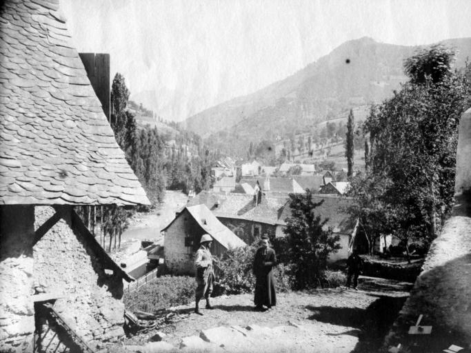| Keywords: monochrome blackandwhite outdoor black and white Fonds Trutat - Photographie ancienne Cote : TRU B 209 Localisation : Fonds ancien (S 30) Original non communicable Titre : Regnault et l'abbé Cau Durban, Bordes-sur-Lez, 18 juillet 1882 Auteur : Trutat, Eugène Rôle de l’auteur : Photographe Lieu de création : Bordes-sur-Lez (Ariège) Date de création : 1882 Mesures : : 18 x 13 cm Observations : Notes manuscrites Trutat : "Obj[ectif] hémisph[érique] rapide ; papier Morgan ; B 207". Mot(s)-clé(s) : -- Montagne -- Vallée -- Village -- Maison -- Pierre -- Toit -- Ardoise -- Rue -- Terre -- Homme -- Costume masculin -- Abbé -- Costume religieux -- Soutane -- Chapeau -- Rivière -- Arbre -- Feuillu -- Peuplier -- Versant -- Champ -- Bocage -- Sommet (montagne) -- Cau-Durban, François-David Abbé -- Regnault, Félix -- Castillon-en-Couserans (Ariège ; canton) -- Bordes-sur-Lez (Ariège) -- Couserans (Ariège) -- Biros, Vallée du -- Pyrénées (France) -- 19e siècle, 4e quart Médium : Photographies -- Négatifs sur papier -- Noir et blanc -- Morgan -- Paysages -- Portraits Voir : TRU B 208 Regnault et l'abbé Cau Durban, Bordes-sur-Lez, 18 numerique.bibliotheque.toulouse.fr/cgi-bin/library?c=phot... Bibliothèque de Toulouse. Domaine public Fonds Trutat - Photographie ancienne Cote : TRU B 209 Localisation : Fonds ancien (S 30) Original non communicable Titre : Regnault et l'abbé Cau Durban, Bordes-sur-Lez, 18 juillet 1882 Auteur : Trutat, Eugène Rôle de l’auteur : Photographe Lieu de création : Bordes-sur-Lez (Ariège) Date de création : 1882 Mesures : : 18 x 13 cm Observations : Notes manuscrites Trutat : "Obj[ectif] hémisph[érique] rapide ; papier Morgan ; B 207". Mot(s)-clé(s) : -- Montagne -- Vallée -- Village -- Maison -- Pierre -- Toit -- Ardoise -- Rue -- Terre -- Homme -- Costume masculin -- Abbé -- Costume religieux -- Soutane -- Chapeau -- Rivière -- Arbre -- Feuillu -- Peuplier -- Versant -- Champ -- Bocage -- Sommet (montagne) -- Cau-Durban, François-David Abbé -- Regnault, Félix -- Castillon-en-Couserans (Ariège ; canton) -- Bordes-sur-Lez (Ariège) -- Couserans (Ariège) -- Biros, Vallée du -- Pyrénées (France) -- 19e siècle, 4e quart Médium : Photographies -- Négatifs sur papier -- Noir et blanc -- Morgan -- Paysages -- Portraits Voir : TRU B 208 Regnault et l'abbé Cau Durban, Bordes-sur-Lez, 18 numerique.bibliotheque.toulouse.fr/cgi-bin/library?c=phot... Bibliothèque de Toulouse. Domaine public |