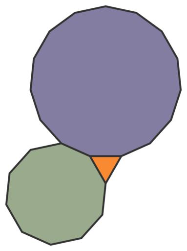 | Keywords: Regular polygons meeting at vertex 3 3 10 15.svg Combinations of regular polygons that can meet at a vertex For Euclidean tilings the internal angles of the polygons meeting at a vertex must add to 360 degrees There are seventeen combinations of regular polygons whose internal angles add up to 360 degrees each being referred to as a species of vertex; in four cases there are two distinct cyclic orders of the polygons yielding twenty-one types of vertex Only eleven of these can occur in a uniform tiling of regular polygons In particular if three polygons meet at a vertex and one has an odd number of sides the other two polygons must be the same If they are not they would have to alternate around the first polygon which is impossible if its number of sides is odd These arrangements are here enumerated 3 polygons of sides 3 7 42 3 polygons of sides 3 8 24 3 polygons of sides 3 9 18 3 polygons of sides 3 10 15 3 polygons of sides 3 12 12 3 polygons of sides 4 5 20 3 polygons of sides 4 6 12 3 polygons of sides 4 8 8 3 polygons of sides 5 5 10 3 polygons of sides 6 6 6 4 polygons of sides 3 3 4 12 4 polygons of sides 3 4 3 12 4 polygons of sides 3 3 6 6 4 polygons of sides 3 6 3 6 4 polygons of sides 4 4 4 4 4 polygons of sides 3 4 4 6 4 polygons of sides 3 4 6 4 5 polygons of sides 3 3 3 3 6 5 polygons of sides 3 3 3 4 4 5 polygons of sides 3 3 4 3 4 6 polygons of sides 3 3 3 3 3 3 2013-06-01 14 17 54 own Dllu cc-zero Polygons that can meet at a vertex Uploaded with UploadWizard Regular decagons Equilateral triangles Regular pentadecagons |