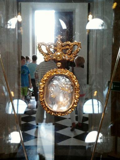 Keywords: Regulski Jewel with a portrait 05.jpg Artwork Creator Jan Regulski intaglio Creator Jean Martin setting 1786/1787 sapphire diamond gold Institution Warsaw Royal Castle accession number object history < 1787 commission Stanislaus Augustus Poniatowski Warsaw ProvenanceEvent 1787 gift Alexander Bezborodko Kaniów ProvenanceEvent deposit Royal Castle Warsaw Private collection credit line J R monogram Created in Warsaw the brooch with an intaglio engraved on a Ceylonese sapphire was part of largest collection of gems in the 18th-century Poland Presented to Alexander Bezborodko on the occasion of King's meeting with Catherine II of Russia in Kaniów in 1787 own See below PD-old-100 DEFAULTSORT 1786/1787; Jewel with a portrait Jewel with a portrait of King Stanislaus Augustus |