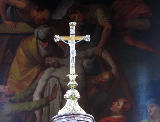 | Keywords: Reichshoffen StMichel 18.JPG Alsace Bas-Rhin Reichshoffen Eglise Saint-Michel Croix d'autel et tableau Déposition de la croix 1790 own 2012 Ralph Hammann Cc-zero Artwork / Œuvre d'art / Kunstwerk Artwork Creator Joseph Melling 1779 oil canvas cm 300 200 Eglise Saint-Michel Reichshoffen Maître-autel IM67007615 object history Le tableau représentant la déposition de la Croix est daté 1790 et signé par le peintre Joseph Melling de Strasbourg other versions Ralph Hammann PD-old-100 accession number Choir altar of Église Saint-Michel Reichshoffen Photographs of Reichshoffen by Ralph Hammann Taken with Canon PowerShot SX20 IS Altar crosses in Bas-Rhin Objets monuments historiques in Bas-Rhin church paintings 18th-century church paintings in Alsace Joseph Melling 18th-century paintings of the descent from the Cross Paintings of the descent from the Cross in France Details of 18th-century paintings Neoclassical paintings in Alsace 1790 works in Alsace 1790 oil on canvas paintings in France |