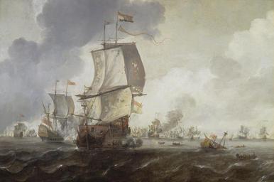 Keywords: Reinier Nooms - A Battle of the First Dutch War.jpg Artwork creator Reinier Nooms A depiction of an unidentified action from the First Dutch War 1652-1654 The increasing conflict of trade interests between England and the Netherlands in the first half of the 17th century made armed conflict likely and it became inevitable after Cromwell's Navigation Act of 1651 All three Dutch Wars which followed were solely maritime conflicts ca 1654 Oil on canvas cm 101 6 152 4 National Maritime Museum BHC0273 credit line National Maritime Museum Greenwich London 1 http //www nmmprints com/image/398314/reinier-nooms-a-battle-of-the-first-dutch-war-1652-54 National Maritime Museum<br/>2 http //collections rmg co uk/collections/objects/11765 html Royal Museums Greenwich Other versions PD-old-100-1923 Reinier Nooms Paintings in the National Maritime Museum London Anglo-Dutch wars 17th-century paintings of naval battles 1654 paintings 17th-century sailing ships in paintings 1650s paintings in the United Kingdom |