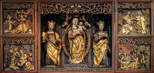 Keywords: religion church altar image wood carve gold maria jesus christianity historically riemenschneider
