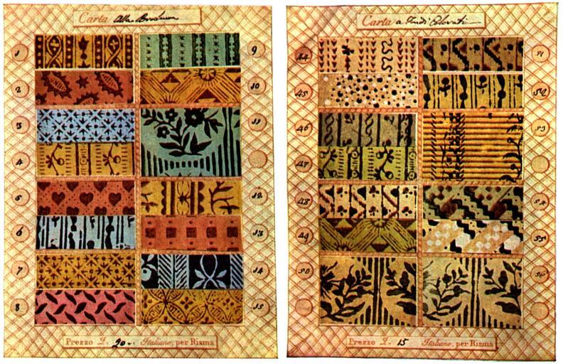 | Keywords: Remondini carta parati.jpg <br/> Wallpaper catalog of Remondini - Bassano - Italy Pagine del catalogo di carte da parati dei Remondini di Bassano Italia Le vie d'Italia anno LXV n 2 - febbraio 1959 - pag 212 century 18 Author PD-old Wallpaper Remondini |