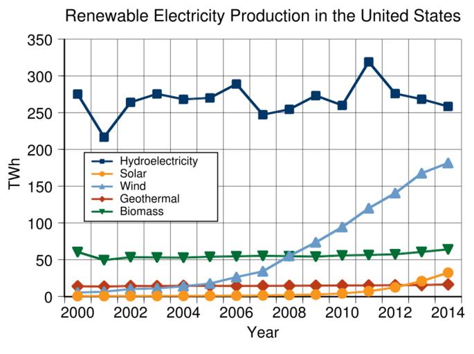 Keywords: Renewable Electricity Production in the United States.svg translate yes en Renewable electricity production in the United States Data from NREL http //www nrel gov/docs/fy16osti/64720 pdf Page 29 2015-01-21 own Delphi234 other versions Generated with Wikimedia SVG Chart SVG Chart/box cc-zero Energy statistics of the United States |