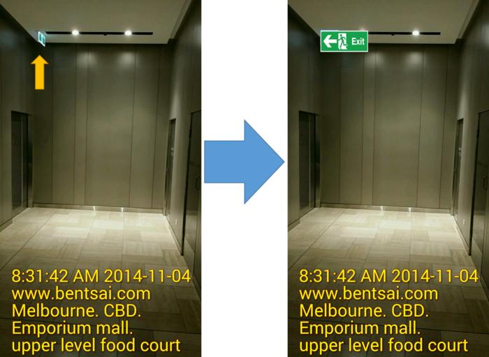 Keywords: 99% of the people evacuating the building will not be able to identify the existing exit sign as clearly and immediately in comparison to the proposed repositioning of exit sign.