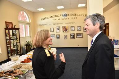 Keywords: FORT LESLEY J. MCNAIR -- Kevin Sullivan, Interim Permanent Representative at the U.S. Mission to the Organization of American States, meets with the Inter-American Defense College Director U.S. Navy RADM Martha Herb at the IADC here Nov. 17, 2016. Sullivan discussed the IADC mission with the director as they toured the college campus, greeting students and staff members.
