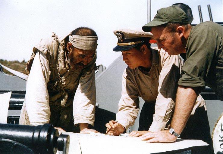| Keywords: Republic of Korea Navy officer and U.S. Navy officer question North Korean fisherman.jpg  Photo 80-G-K-14194 Color Operation Fishnet Korea 1952 A Republic of Korea Navy officer and a U S Navy Underwater Demolition Team officer question a captured North Korean fisherman about the location of fishing nets off the enemy coast They are part of Operation Fishnet intended to reduce Communist forces' food supplies by destroying North Korean fishing nets Photograph is dated 16 September 1952 Official U S Navy Photograph now in the collections of the National Archives http //www history navy mil/photos/images/k14000/k14194 jpg 1952-09-16 US Navy PD-USGov-Military-Navy original upload log wikitable date/time username resolution size edit summary ---- 12 15 13 March 2008 User Mbdortmund 740×512 84 KB <nowiki></nowiki> ---- 10 58 9 December 2007 User Bin2k1 740×540 96 KB <nowiki> <span class comment > Photo 80-G-K-14194 Color Operation Fishnet Korea 1952 A Republic of Korea Navy officer and a U S Navy Underwater Demolition Team officer question a captured North Korean fisherman about the location of fishing nets o </span></nowiki> Republic of Korea Navy Military people of South Korea Retouched by Mbdortmund |