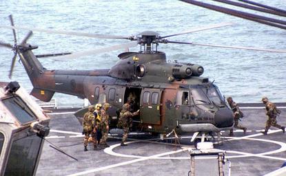 | Keywords: Republic of Singapore Air Force Eurocopter AS332 Super Puma on the USS Rushmore during CARAT 2001 - 20010720.jpg Date 2001 07 20 ABOARD USS RUSHMORE ” U S Army soldiers board a helicopter of the Republic of Singapore Air Force on the flight deck of the USS Rushmore as part of the seventh annual Cooperation Afloat Readiness and Training CARAT 2001 exercise CARAT a series of bilateral exercises takes place throughout the Western Pacific each summer The exercise increases regional cooperation and promotes interoperability with each country The countries participating in CARAT 2001 are Indonesia Singapore Philippines Thailand Malaysia and Brunei U S Navy photo and caption by Photographer's Mate 3rd Class Antonio Medrano http //www pacom mil/imagery/archive/0107photos/010720carat-h jpg page is/was http //en wikipedia org/w/index php title Image 3A010720carat-h jpg here 2001 07 20 ; U S Navy Photographer's Mate 3rd Class Antonio Medrano; original uploader was Limkopi at en wikipedia PD-USGov-Military-Navy Original upload log All user names refer to en wikipedia 2007-04-28 18 25 Limkopi 916×566×8 487976 bytes <nowiki>U S soldiers sailors train with Republic of Singapore armed forces during CARAT 2001 07/20/2001 ABOARD USS RUSHMORE -- U S Army soldiers board a helicopter of the Republic of Singapore July 12 on the flight deck of the USS Rushmore as part of the seve</nowiki> Aboard USS Rushmore LSD-47 AS 332 Super Puma Republic of Singapore Air Force Cooperation Afloat Readiness and Training 2001 |