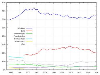| Keywords: Reserve currencies.svg en Percentage of global currency reserves held in the particular currency Own work source of data IMF International Monetary Fund http //www imf org/external/np/sta/cofer/eng/cofer pdf Currency Composition of Official Foreign Exchange Reserves Gorgo 2009-12-28 Other versions <gallery> File Reserve currencies total svg Total global foreign exchange holdings</gallery> Other fields G + Sources for data 1995-2010 IMF International Monetary Fund http //www imf org/external/np/sta/cofer/eng/cofer pdf Currency Composition of Official Foreign Exchange Reserves 1999-2005 European Central Bank 2005 http //www ecb int/pub/pdf/other/euro-international-role200512en pdf Review of the International Role of the Euro Frankfurt European Central Bank 2006 http //www ecb int/pub/pdf/scpops/ecbocp43 pdf The Accumulation of Foreign Reserves Occasional Paper Series Nr 43 1995-present http //data imf org/regular aspx key 41175 World Currency Composition of Official Foreign Exchange Reserves Macroeconomics Currencies Euro Money of the United States Money of the United Kingdom Money of Switzerland Money of Japan SVG diagrams |