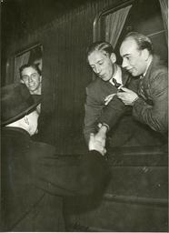 Keywords: reservepoliti vårslipp 2012 vårslipp2012 vårslipp andre verdenskrig andreverdenskrig norske flyktninger i sverige under krigen norskeflyktningerisverigeunderkrigen people 1200 nordmenn fra reservepolitiforlegningen på Øreryd var onsdag 6. desember 1944 gjester i Göteborg, hvor de fikk en hjertelig mottagelse av vertskapet –Göteborgs-Posten ivrig assistert av Karl Gerhard og Gøteborgs politiorganisasjoner. Bildet viser: den norske konsul i Göteborg, Fuglesang, tar avskjed med guttene fra Øreryd. RA/PA-1209/Uc/68/4/S 5427 1200 nordmenn fra reservepolitiforlegningen på Øreryd var onsdag 6. desember 1944 gjester i Göteborg, hvor de fikk en hjertelig mottagelse av vertskapet –Göteborgs-Posten ivrig assistert av Karl Gerhard og Gøteborgs politiorganisasjoner. Bildet viser: den norske konsul i Göteborg, Fuglesang, tar avskjed med guttene fra Øreryd. RA/PA-1209/Uc/68/4/S 5427 |